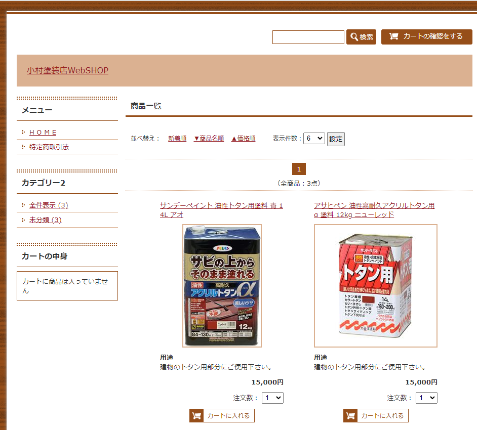 ショッピングカート作成しました。